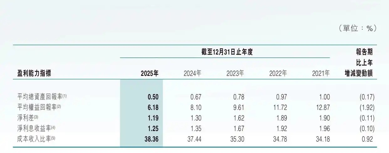 从盈利才能打算来看,2025年,东莞农商银行平均总钞票答复率、平分权利答复率、净利差、净利息收益率均同比下滑,该行成本收入比率则同比增长0.92%至38.36%。